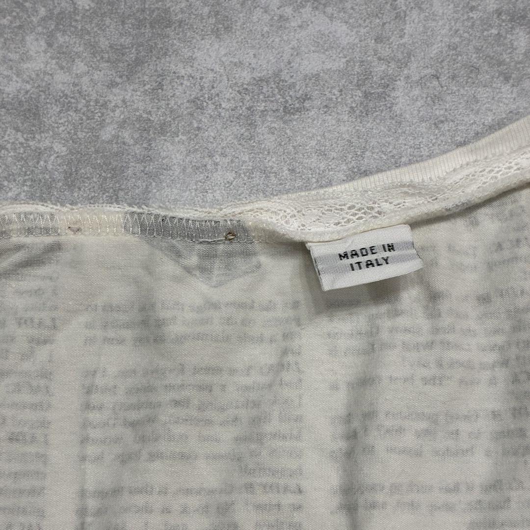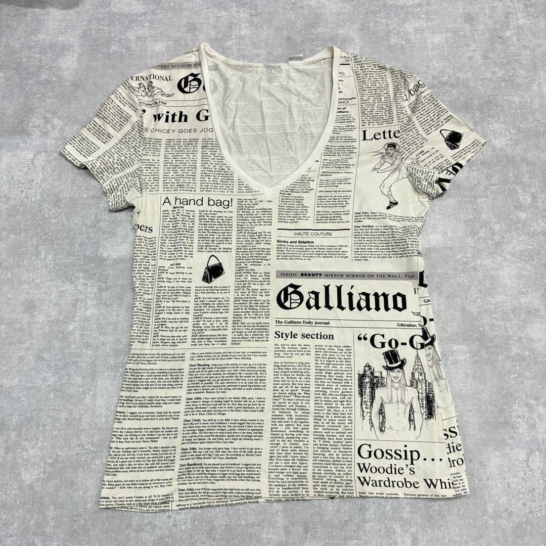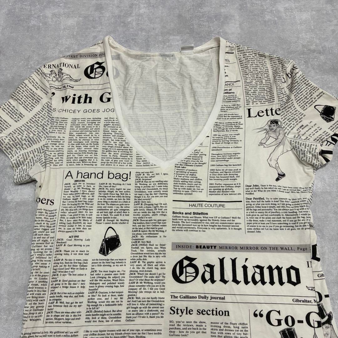 全面にプリントされた新聞紙柄のデザインにかなり深いVネックがY2Kらしさを感じさせるアイテム。