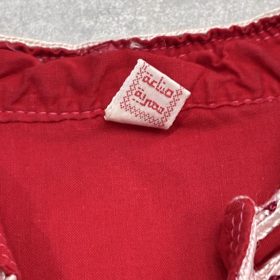 発色の良い赤の色味に刺繍のデザインがオシャレなアイテム。