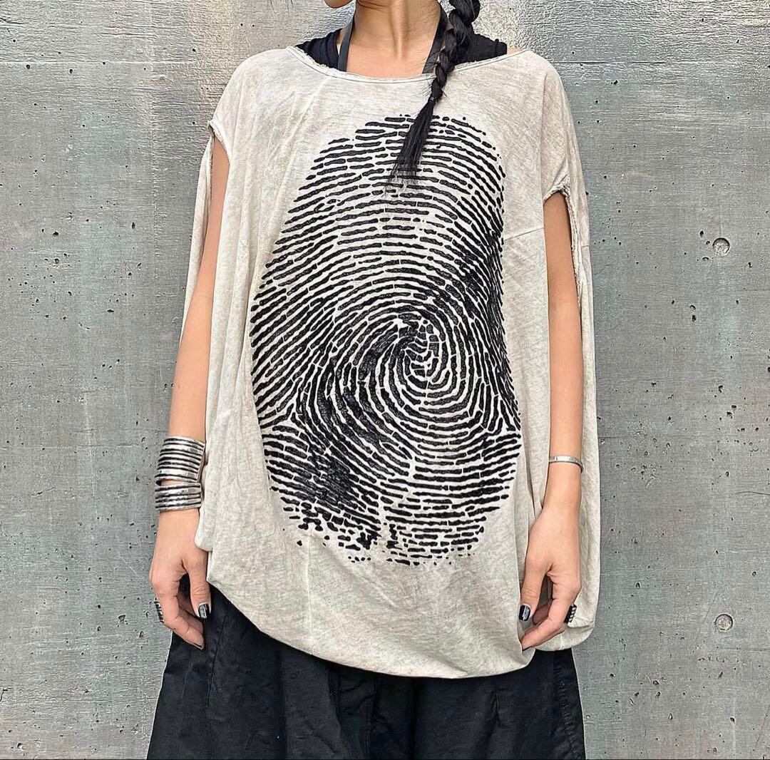 ムラのある染めやラバープリントの指紋など変わったデザインでカッコいいです。