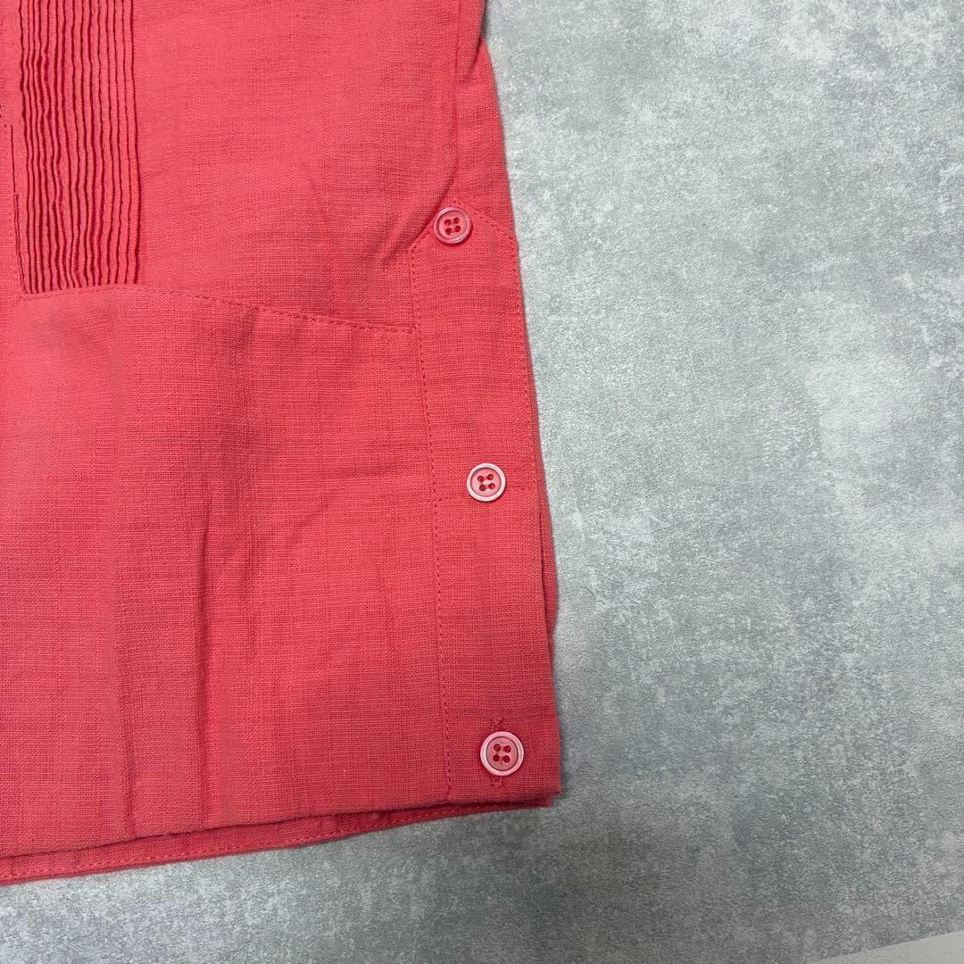 キューバシャツらしいプリーツや刺繍はもちろんペンホルダーやポケット、ボタン留め仕様のサイドスリットなど細かなところまでオシャレです。