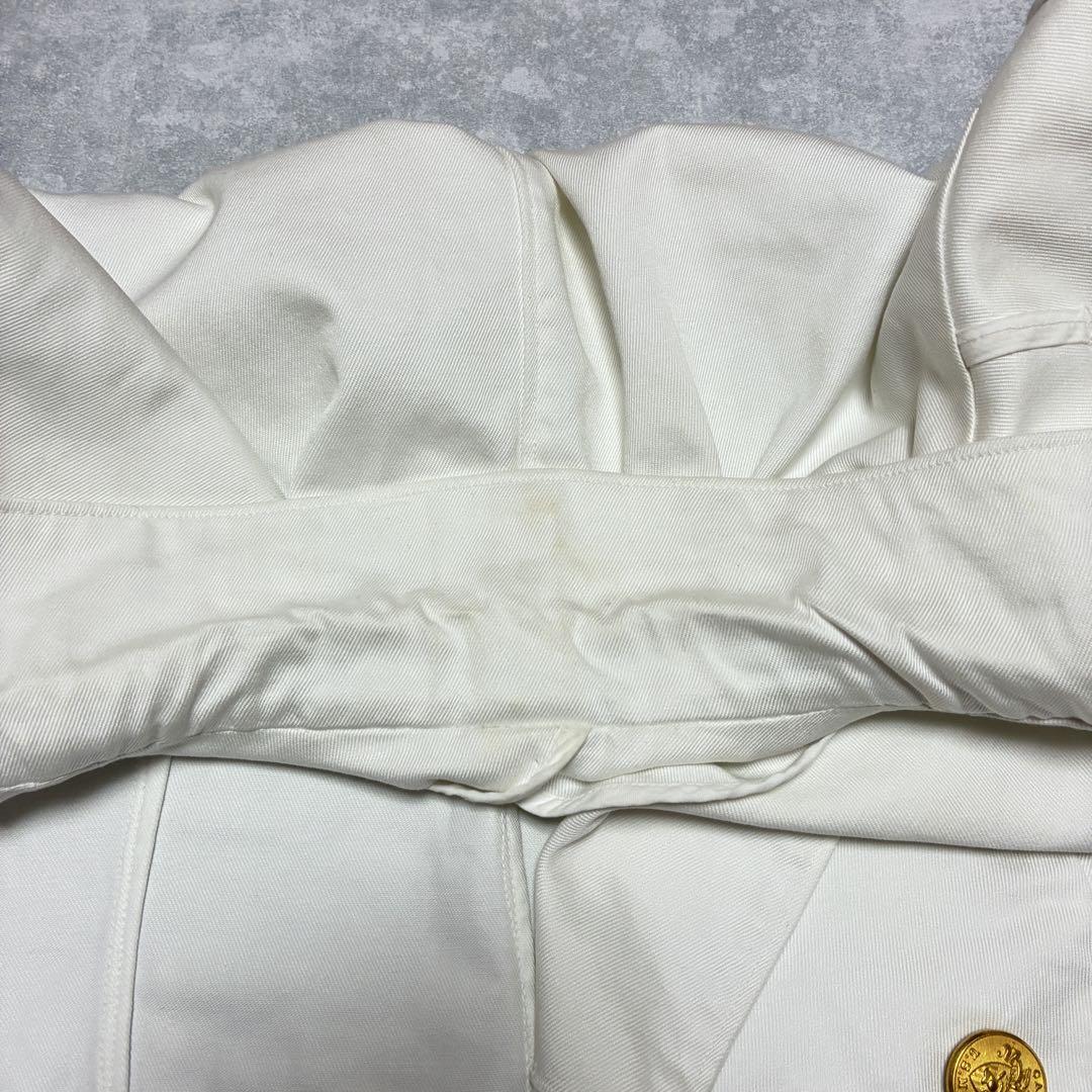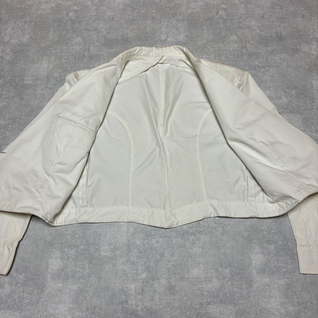 爽やかな白の生地に金のボタンが映える短丈シルエットのアイテム。