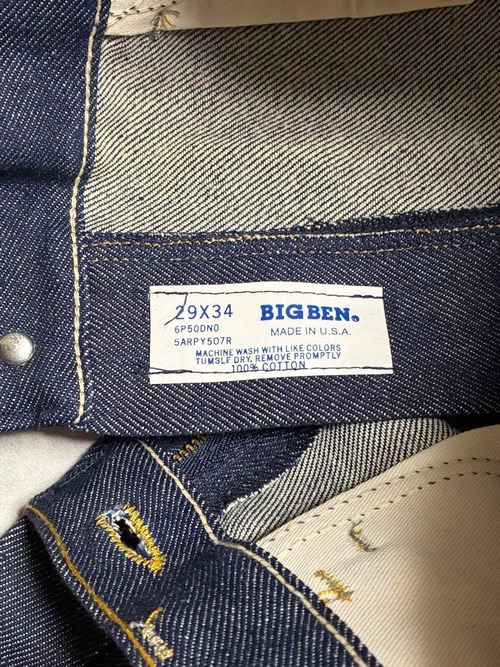 80-90年頃のアメリカのワークブランド BIG BEN のデニムパンツです。