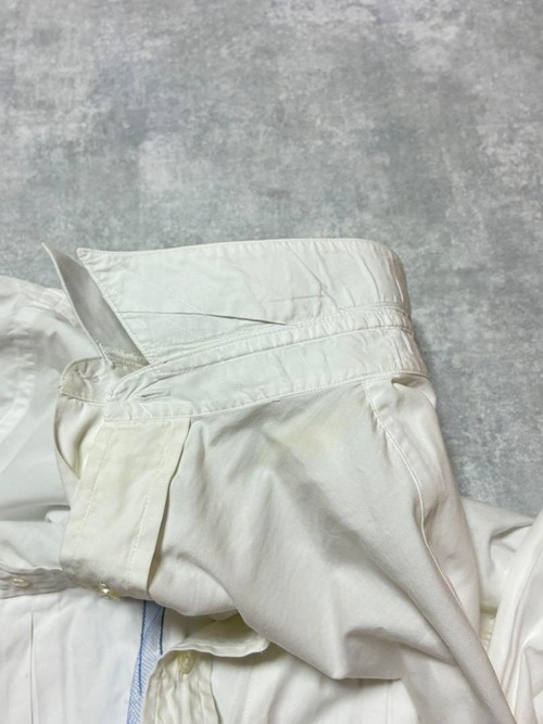 ボディには90s頃のARROWのヴィンテージのシャツが使われており、襟をリサイズしネットの切り返しやステッチのデザインを加えています。