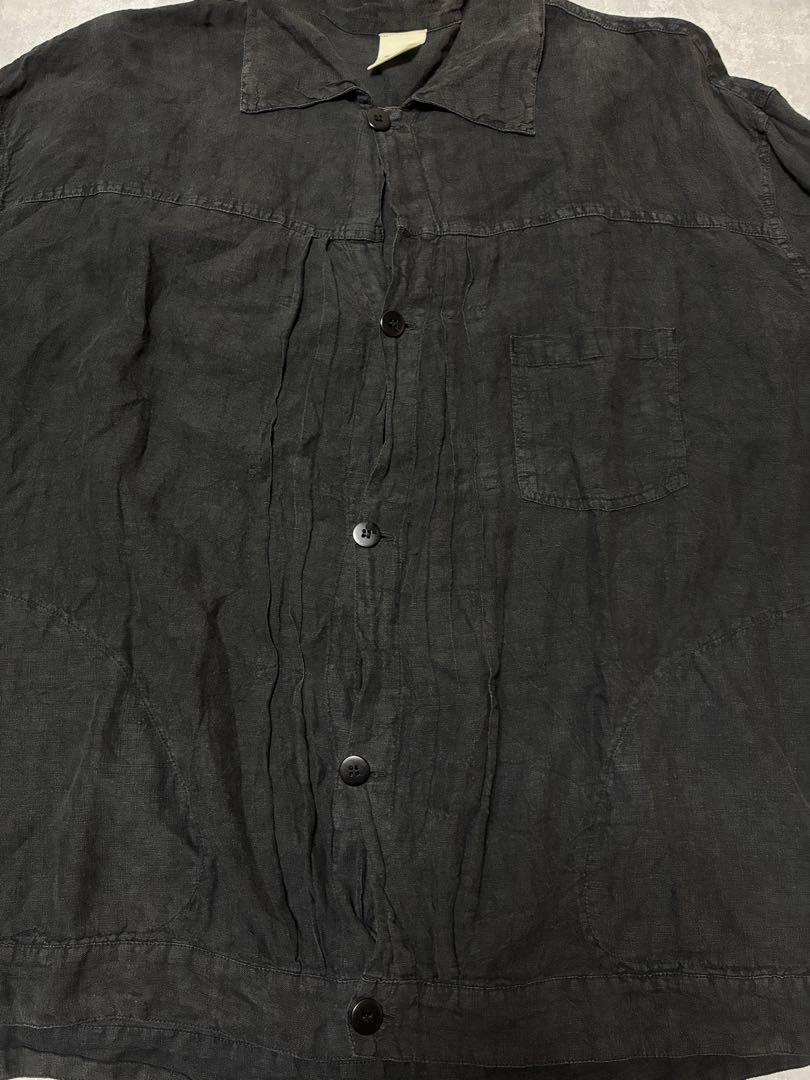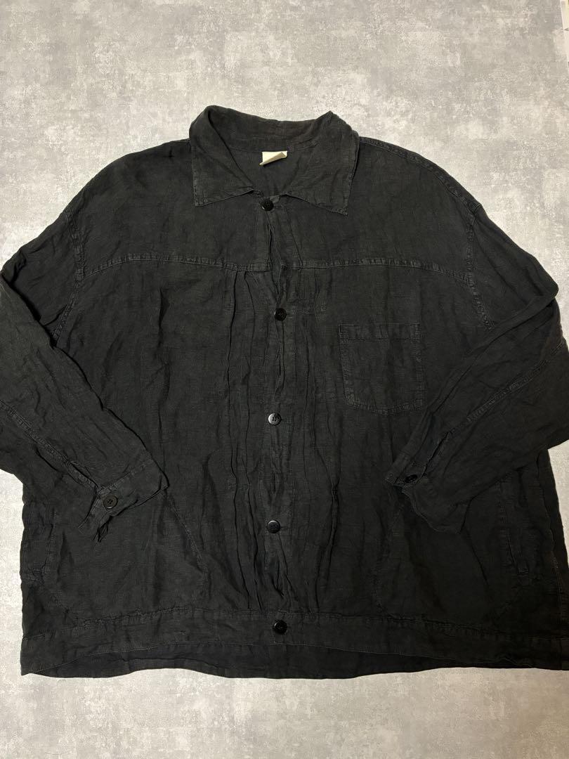 リネン特有のシワ感やドライな風合いがワークウェア由来の武骨さにナチュラルで上品なニュアンスをプラスしています。