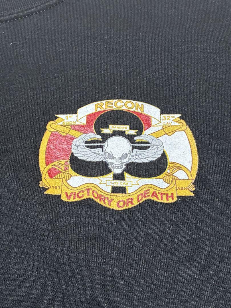 フロントには「RECON」「VICTORY OR DEATH(勝利か死か)」のスローガンと共に翼を広げたドクロのエンブレムをプリント。