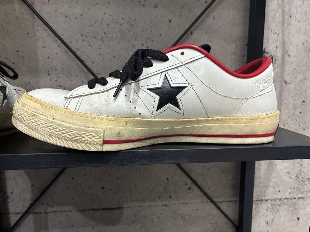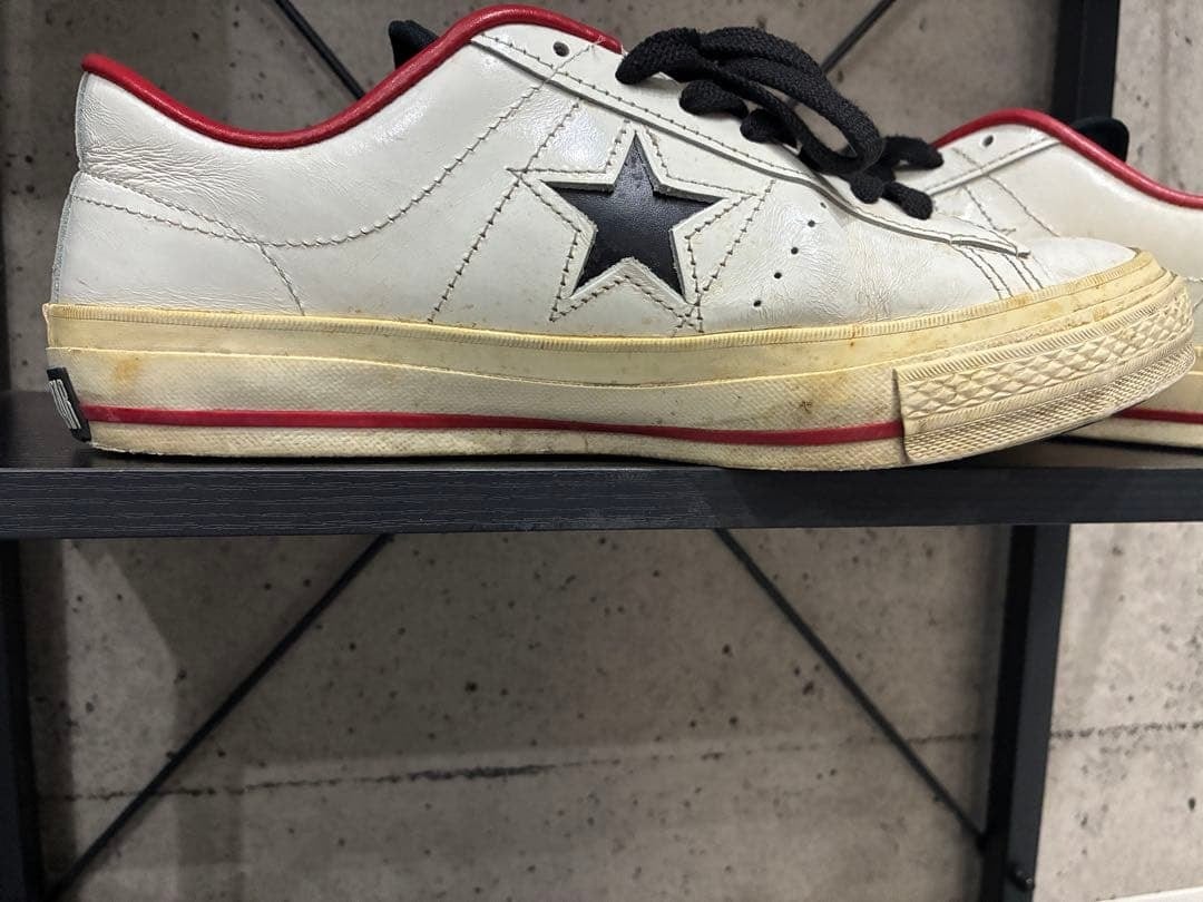 アッパーにホワイトレザーを採用し、ブラックのスターマークや赤のパイピングを配したクラシックなアイテム。