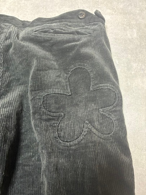 柔らかいコーデュロイ生地に各所へ施された同生地のフラワーモチーフのパッチワークがカッコいいです。