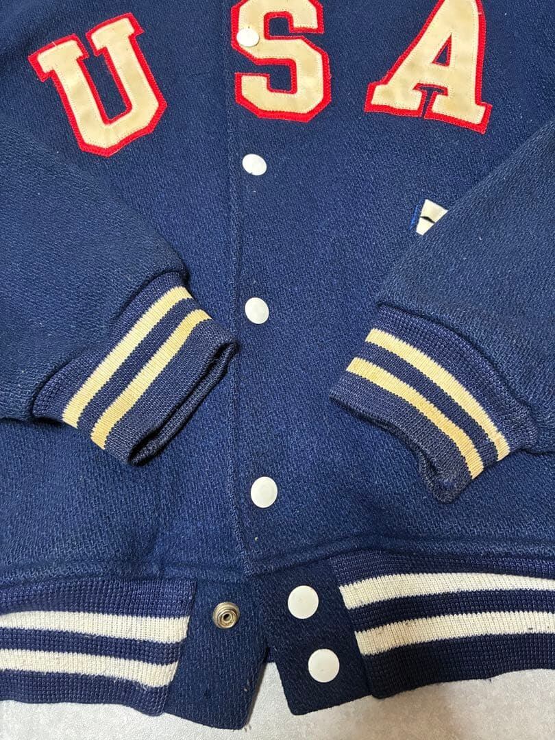 70s FELCO スタジャン USAパッチ ブルー アメリカ製 ウール