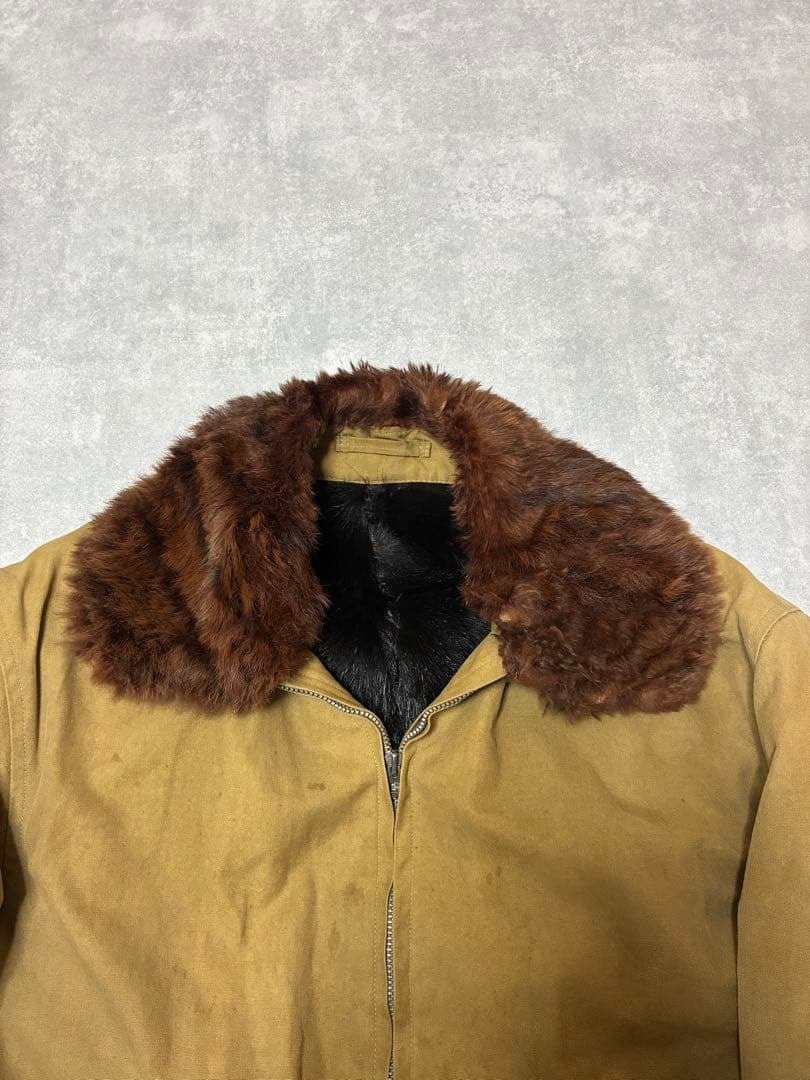 ボディの裏地にはハラコを使用しており、襟には肉厚のファーを配した極めて防寒性の高い仕様。