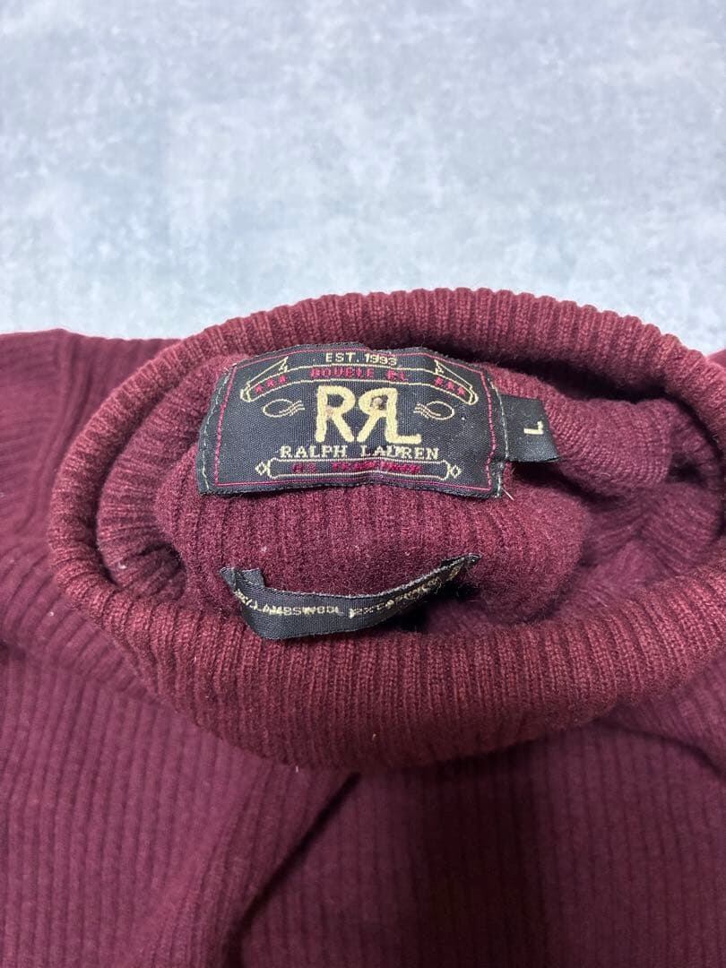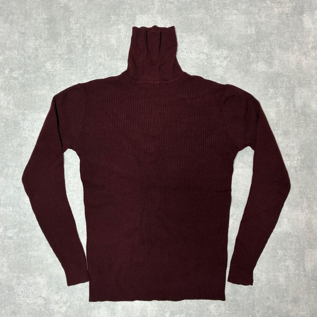 深みのあるボルドーの色味にリブ編みのデザインのシンプルなアイテム。