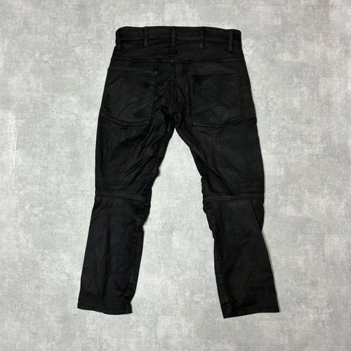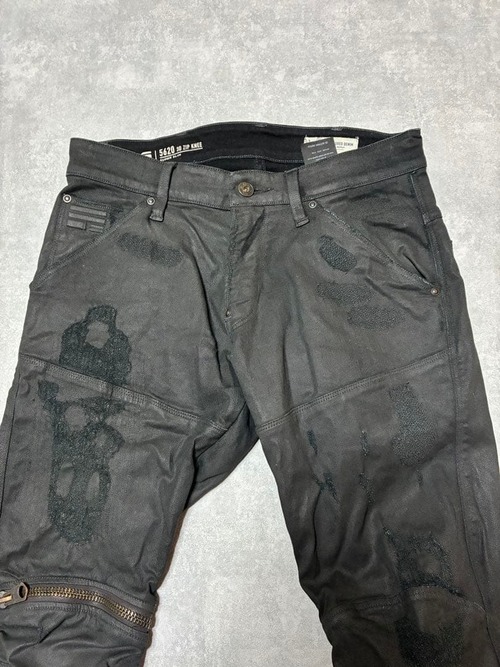G-STARを代表する3D構造パターンを採用したモデルで人体の可動を前提に設計された立体的なシルエットが特徴となっており、細身ながらも膝周りやヒップにストレスを感じにくい履き心地を実現しています。