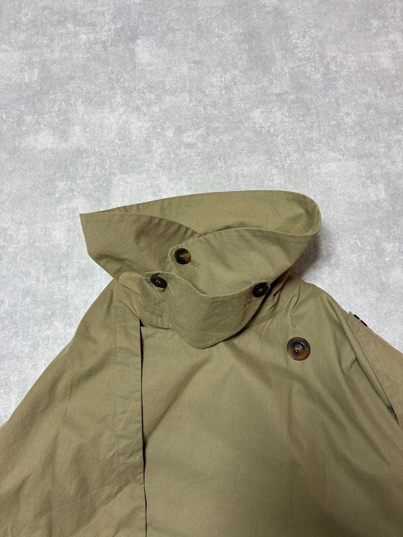 イタリア製ならではの上質なコットン素材を使用し、ミリタリー由来のトレンチコートをアルマーニらしい洗練されたバランスで再構築した一着で肩の力を抜いた落ち感のあるシルエットが特徴です。
