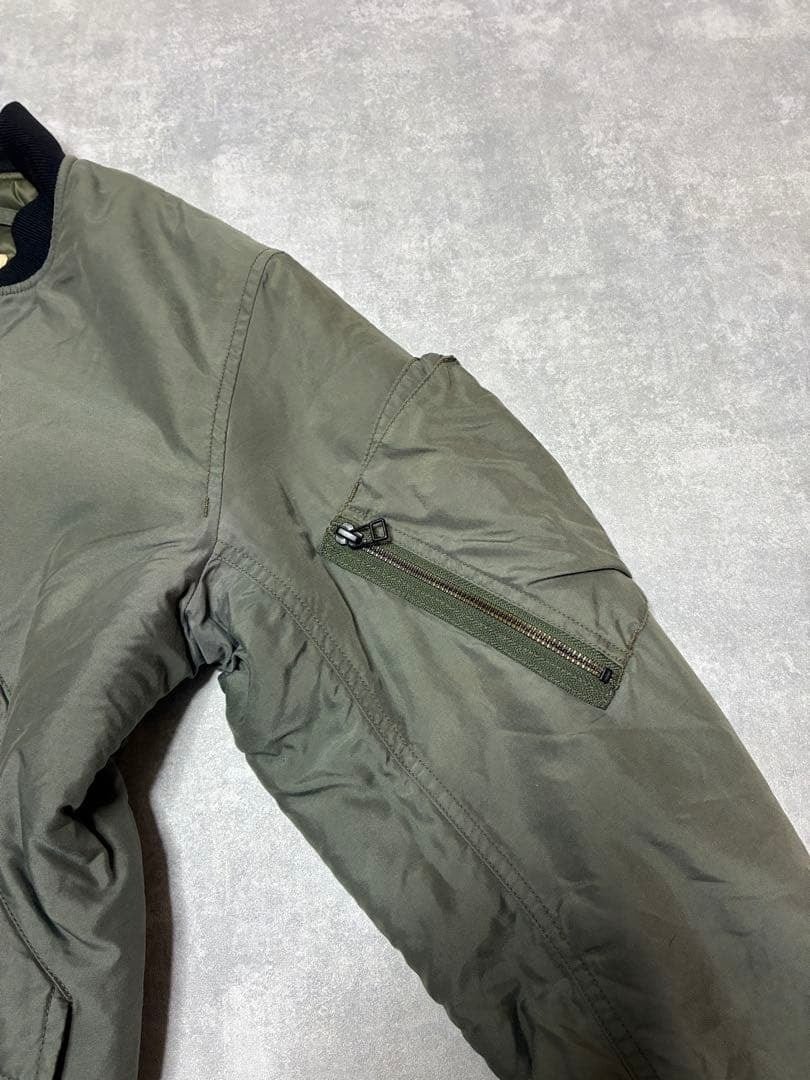 通常のMA-1とは違いミニマルな印象ながら袖のシガレットポケットが両袖にある等、ブランド独自のフィルターで再解釈したデザインになっています。