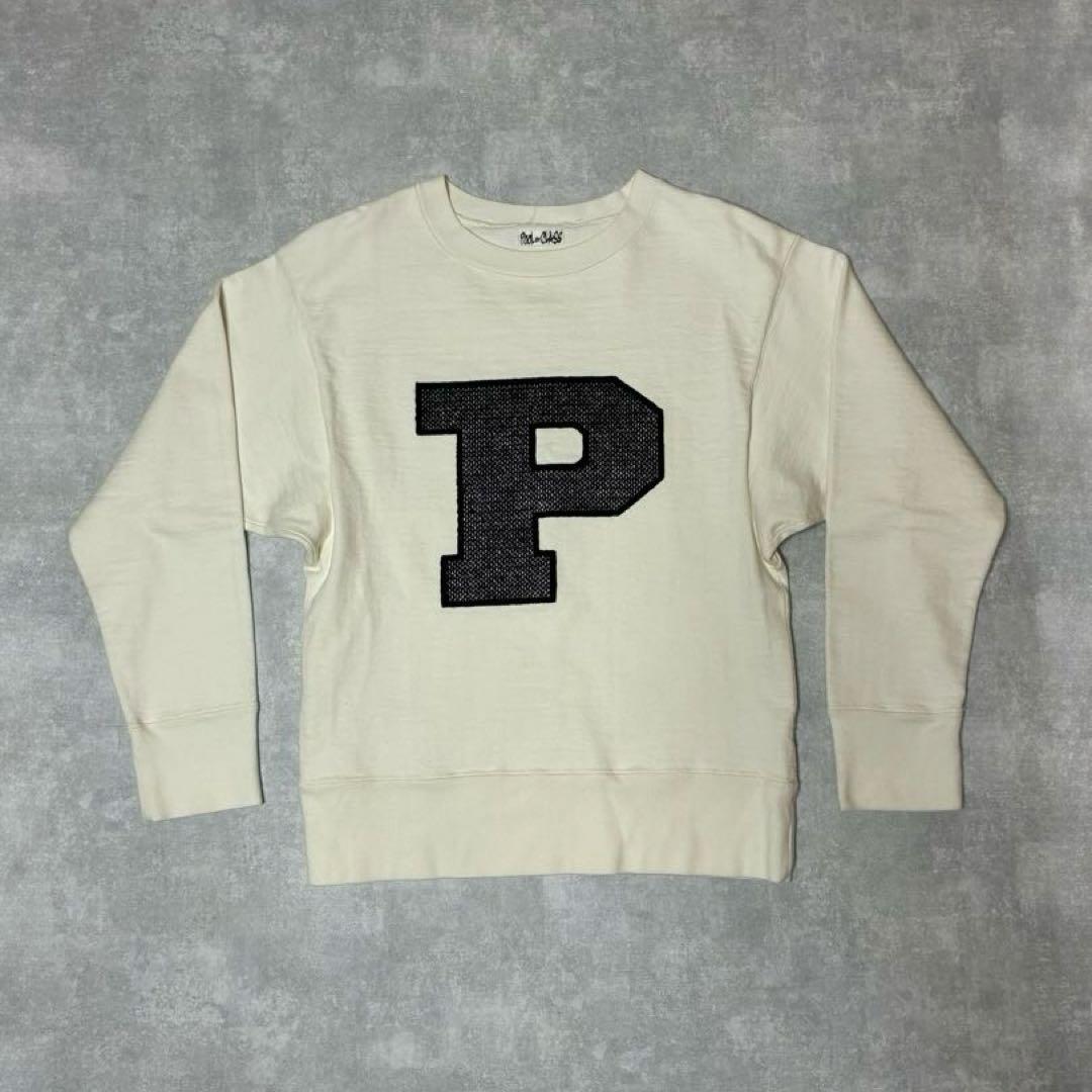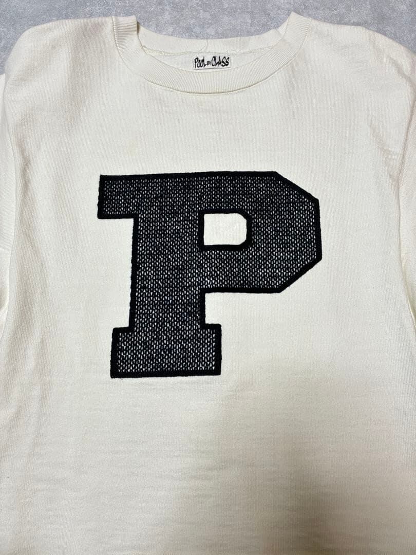 フロントの「P」はアイビーなどの文脈で見られるクラシックなレタード仕様のワッペンです。