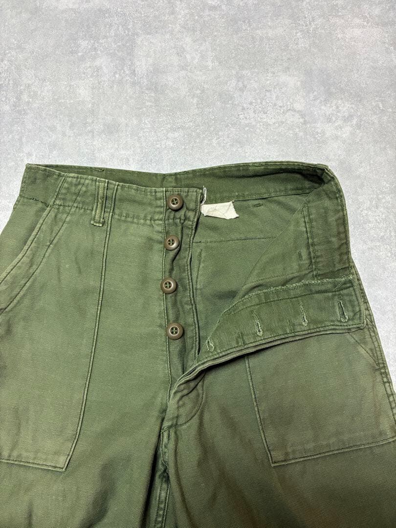 フロントはボタンフライ仕様となっており、当時のミリタリーパンツらしいクラシックなディテールがしっかりと残されています。