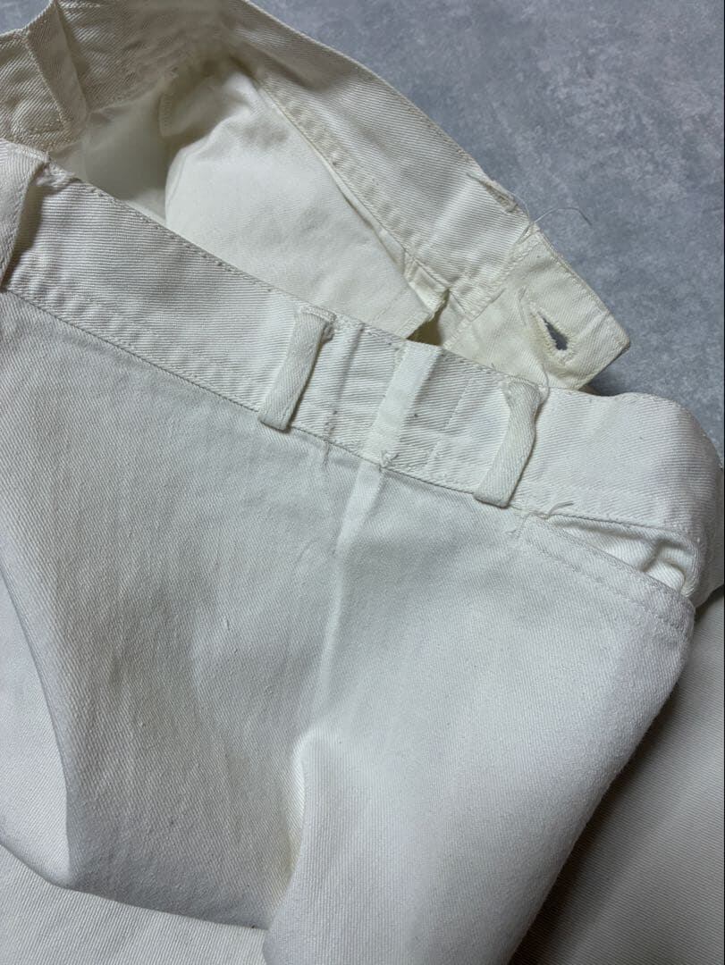 一見シンプルな白パンツですが実際には非常に特徴的な構造を持った一本で、ヴィンテージミリタリーならではの奥深さを感じられるアイテムです。