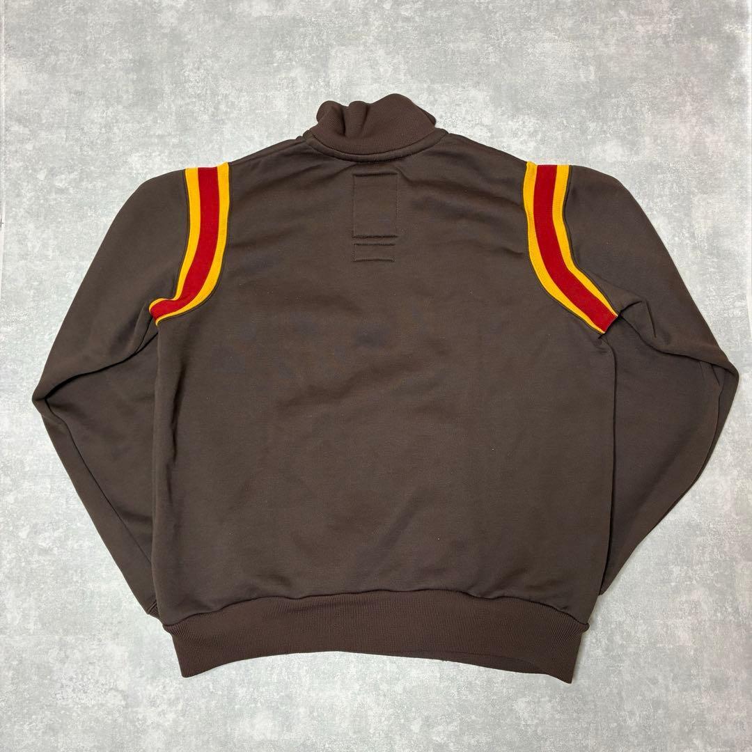 単なるロゴスウェットではなく、トラックジャケット的要素を持ったデザインに仕上がっています。