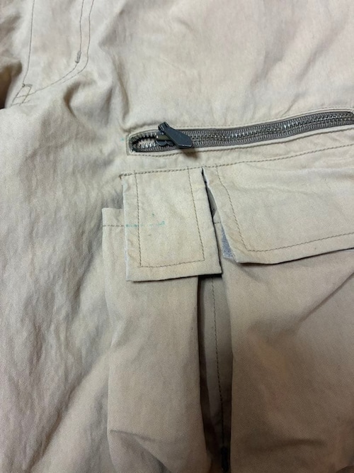 ジップ付きポケットやフラップポケットを組み合わせ、ワーク・ミリタリー要素を感じさせ、Y2Kなデザインに仕上がっています。