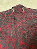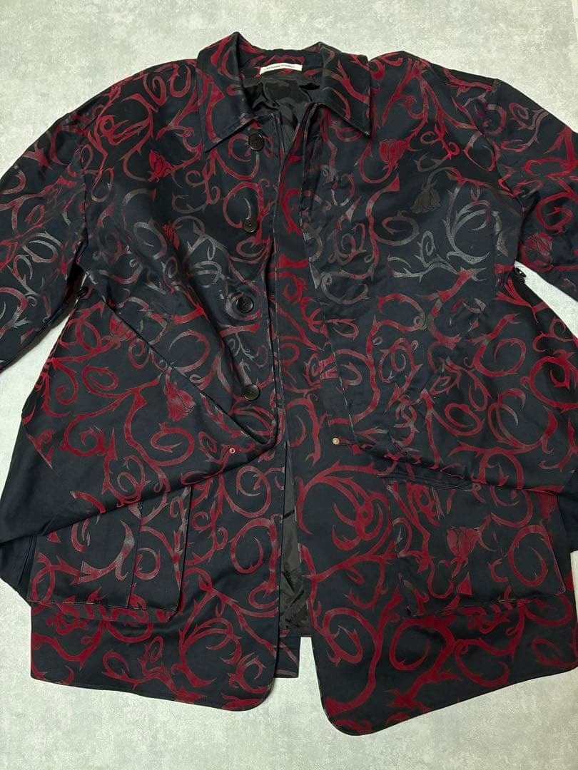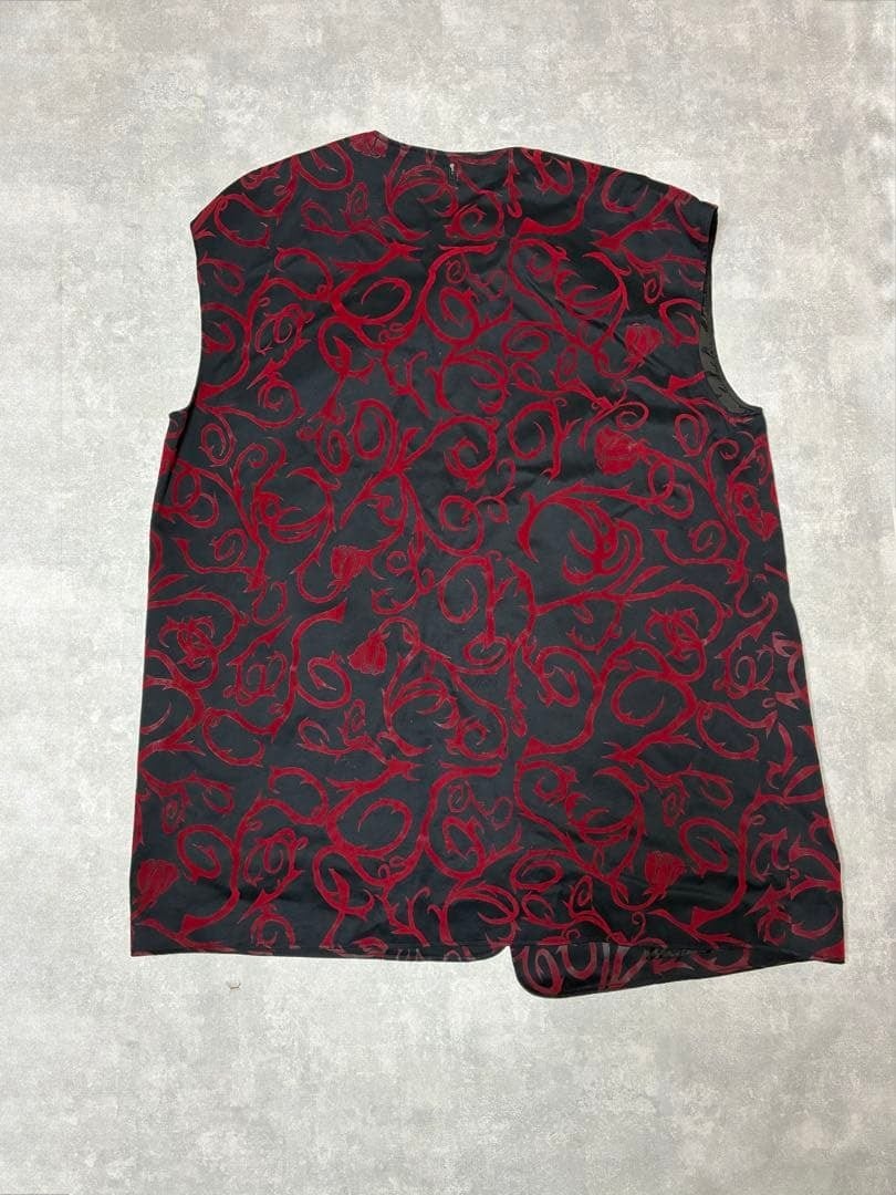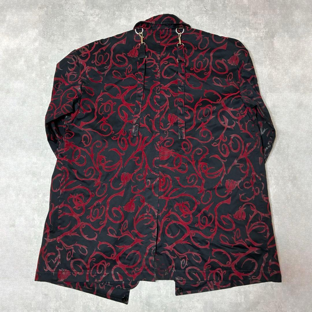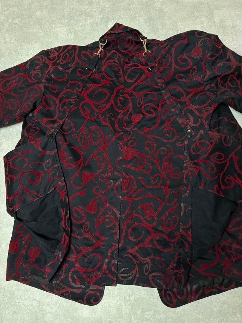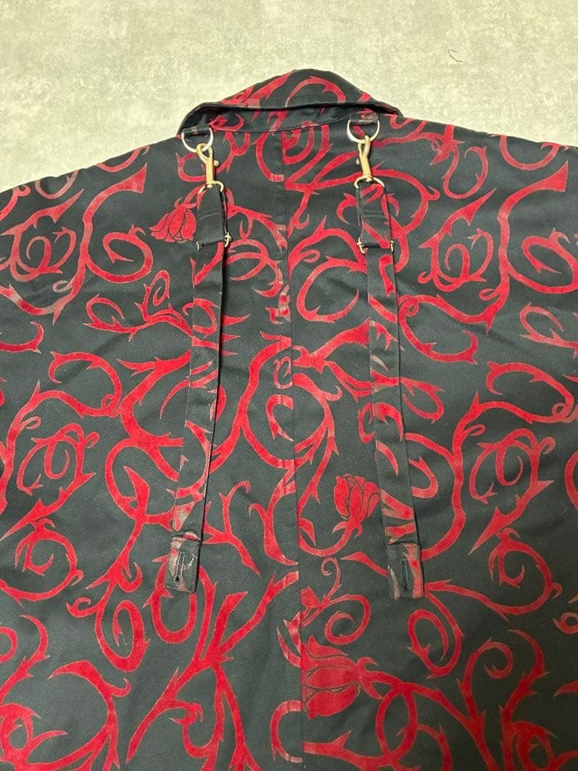 黒のボディに、深紅のバラモチーフしたトライバル柄のフロッキープリントが印象的な一着。