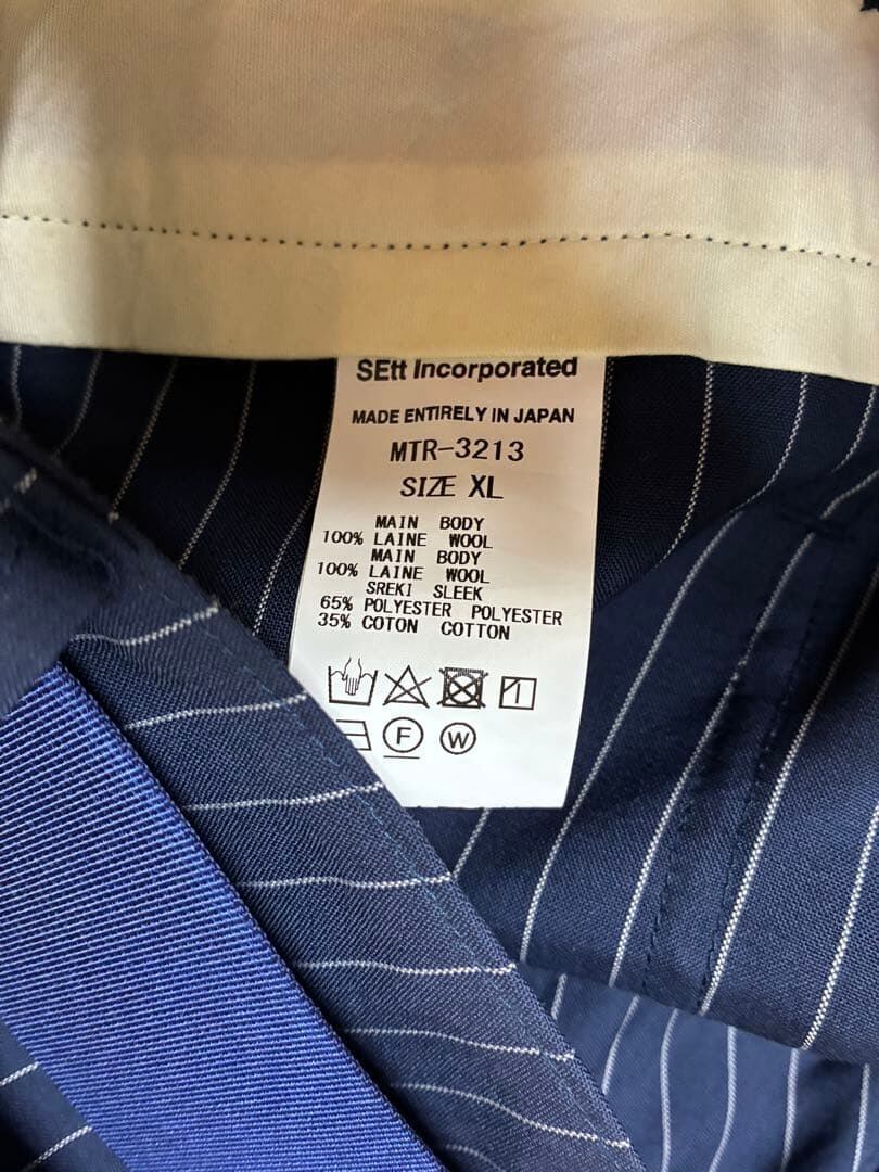 メインボディには上質なウール100%のピンストライプ生地を採用。