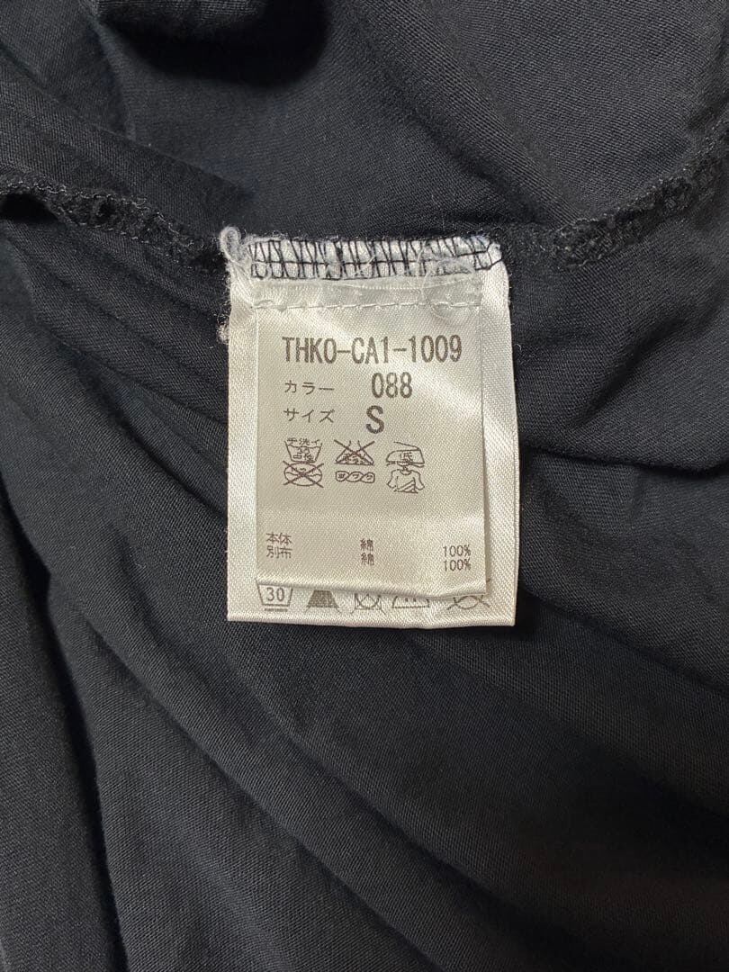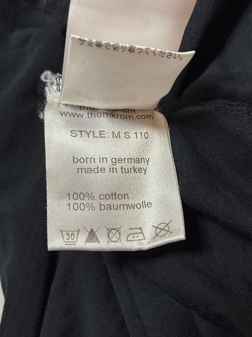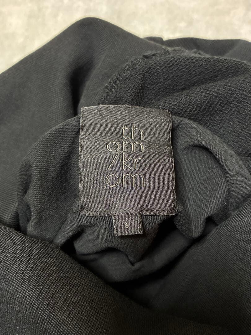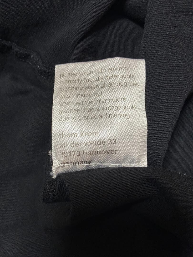 さらに内側には薄手のカットソー素材がレイヤードされており、シンプルなブラックながら奥行きのある構造に。裾やサイドに自然な動きが生まれ、thom/kromらしいミニマルながらエッジの効いたシルエットを形成します。