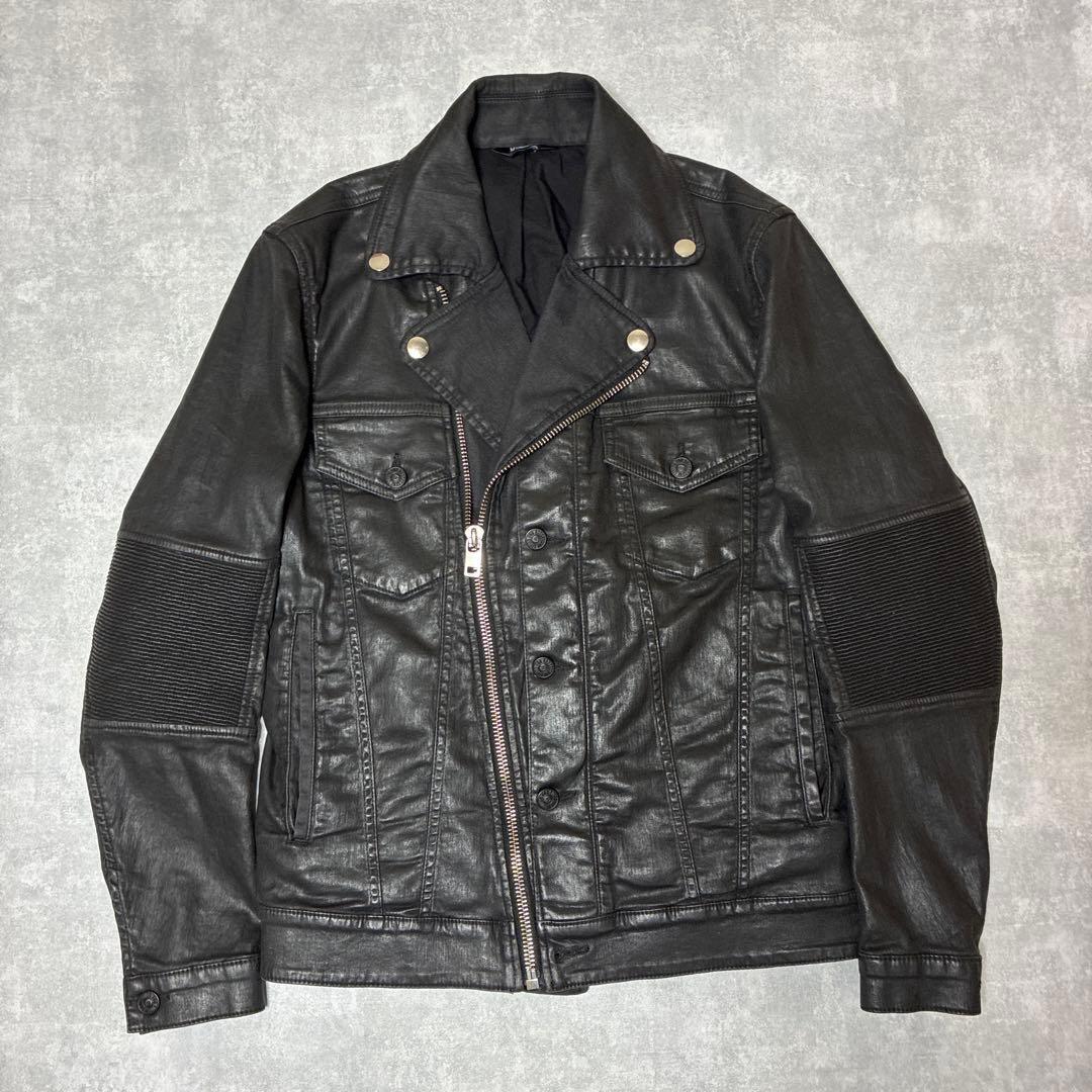 DIESEL 20AW コーティング デニム ライダースジャケット ブラック