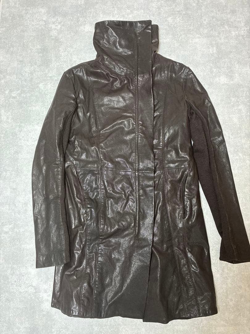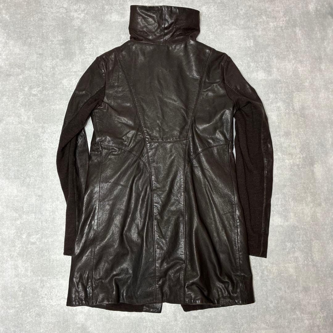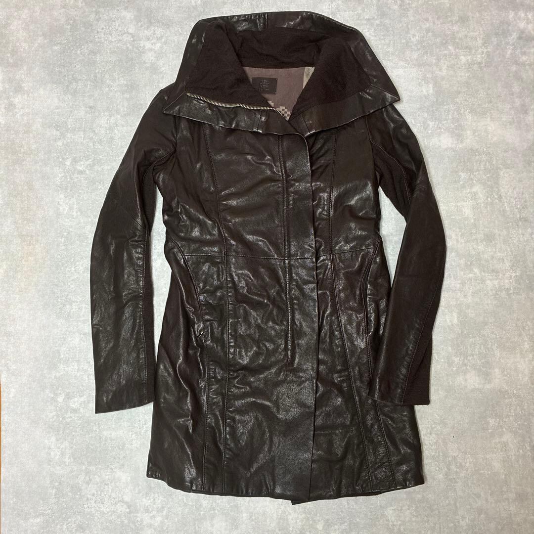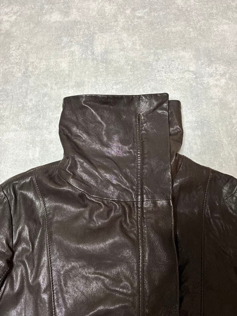 REHARD ハイネック レザーコート ダークブラウン ダブルジップ Y2K