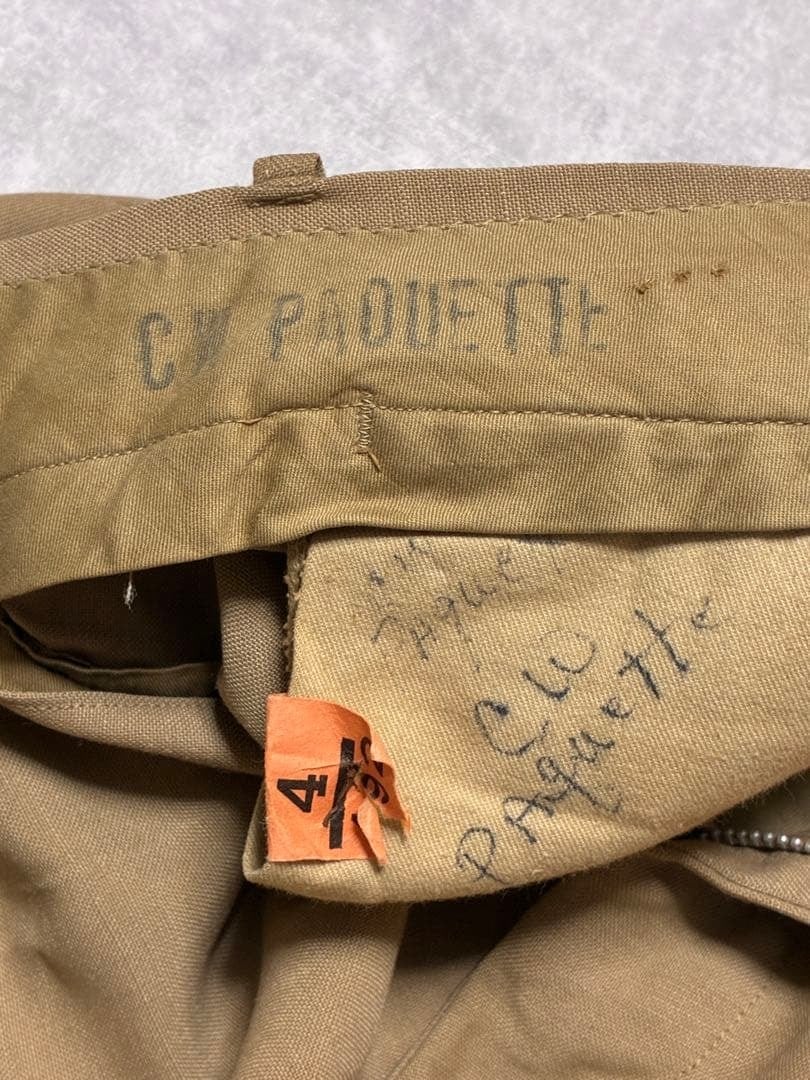 「TROUSERS, MEN'S, RAYON-MOHAIR-NYLON, KHAKI (TROPICAL)」という、1950年代に米軍で採用されたトラウザーズ。