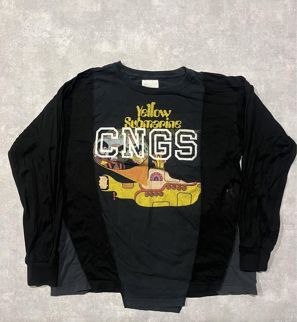 古着のBeatlesのバンドT、イエローサブマリンTをボディとしており、その上からCNGSのプリントがしてあり、かなりカッコいいです。